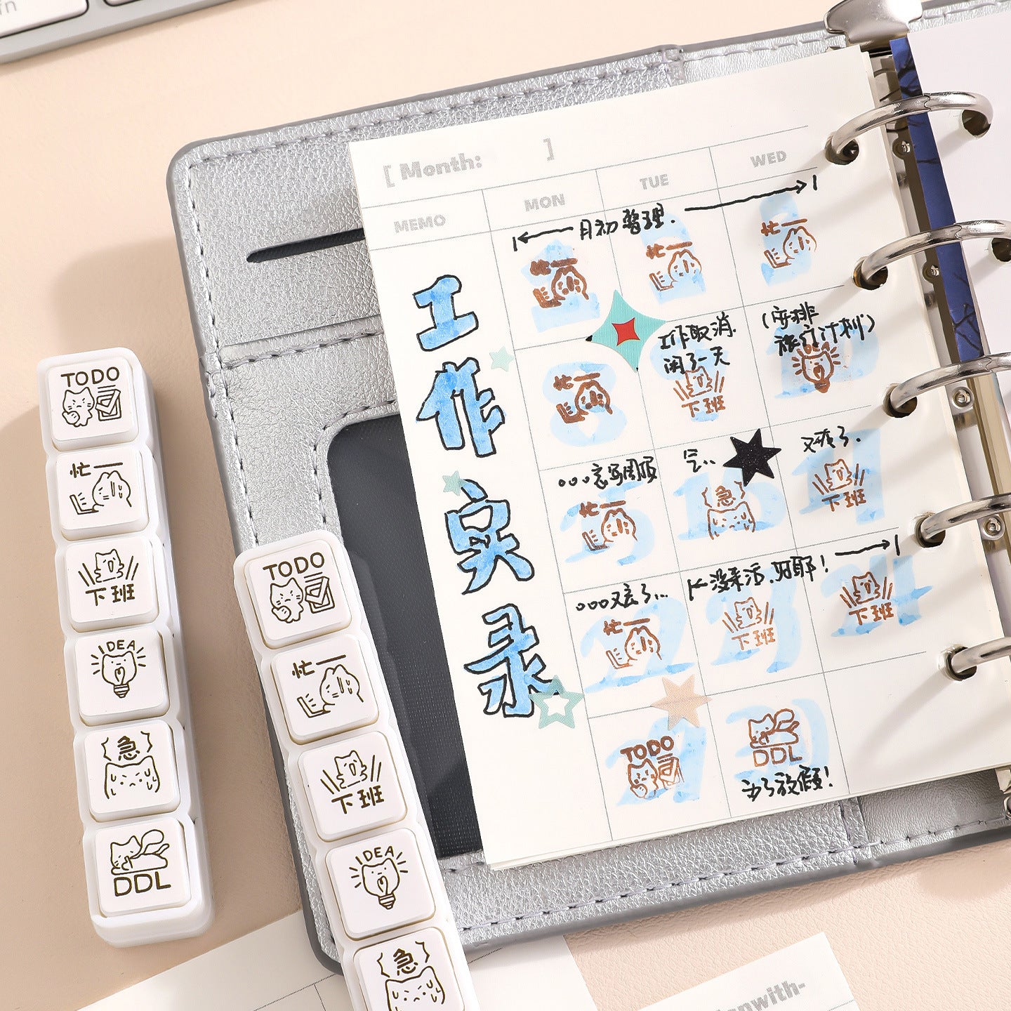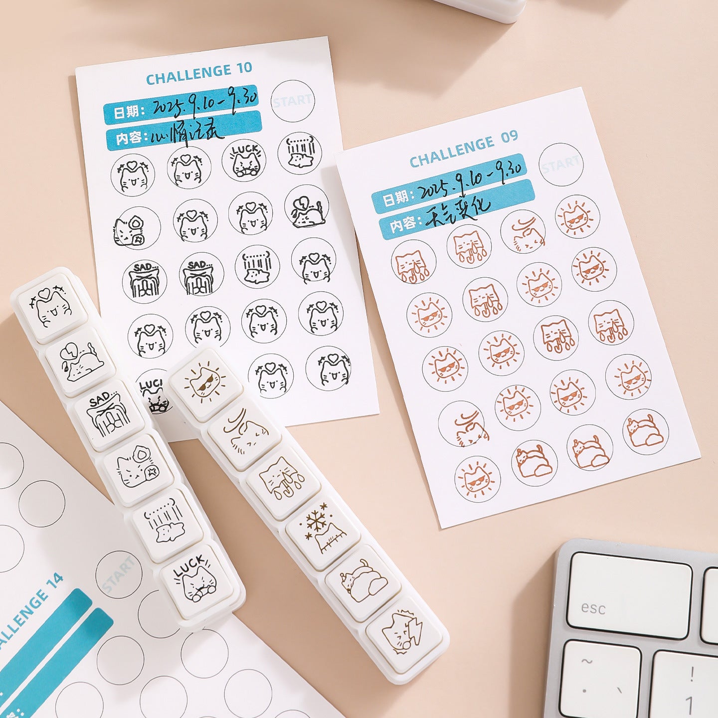 6 in 1 Kitten Daily Recording Stamps